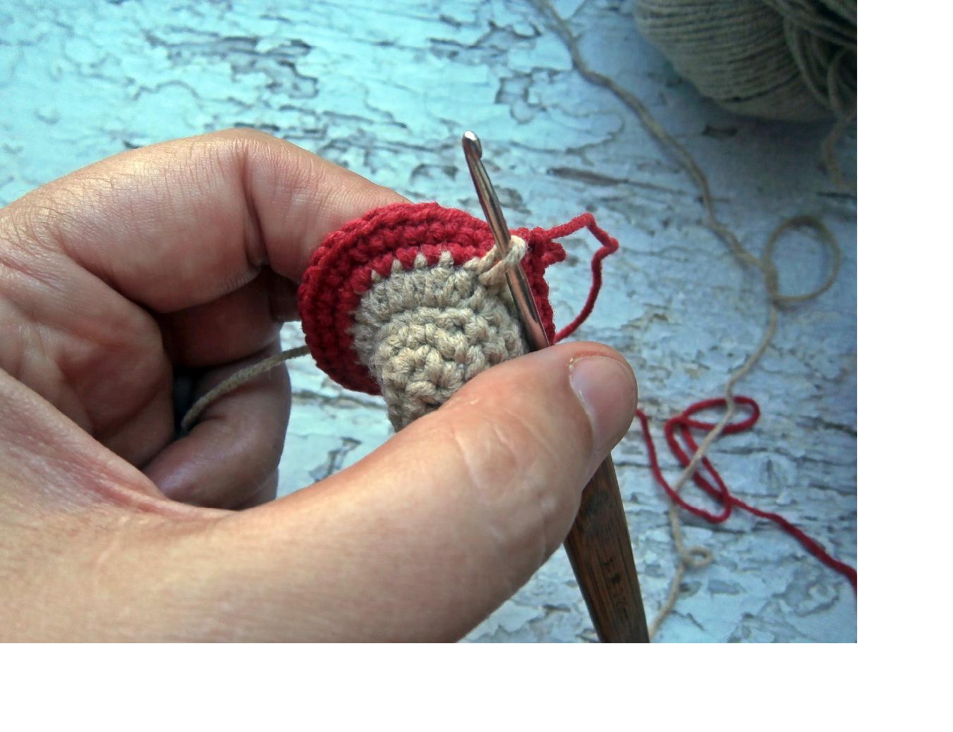 На этом же этапе я вставляю глазки в 4 и 5-ую прибавки в 5-ом ряду
