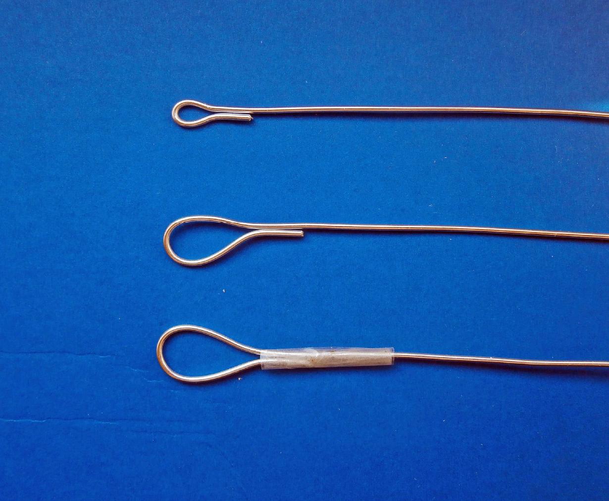 На одном конце проволоки делаем петельки и обматываем (закрепляем) их при помощи скотча, лейкопластыря, изоленты или др. фиксирующего материала.