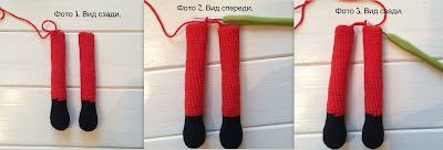 ЛЕВУЮ ногу вяжем аналогично, НО нить не обрезаем и не закрепляем. Мы будем от нее продолжать вязание тела!ТЕЛО: