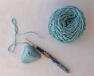 3 ряд: *2 ст б/н, 2 ст б/н в одну петлю основания* повторить 3 раза. Получается 12 петель.