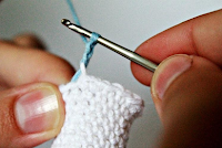 Меняем цвет нити на белый и продолжаем вязание.