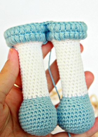 Одна ножка готова. Таким образом вяжем две детали.