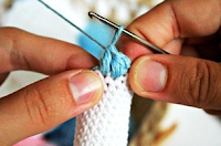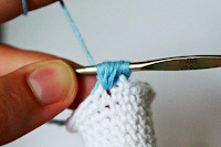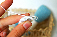Начинаем вязать нитью голубого цвета. Наполняем по ходу вязания.