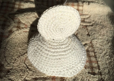 Находим примерно середину боковой части туловища. Переднюю часть птички будем вязать с убавками столбиками без накида, заднюю с прибавками столбиками с накидом (хвост). По схеме.