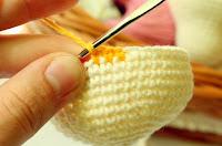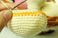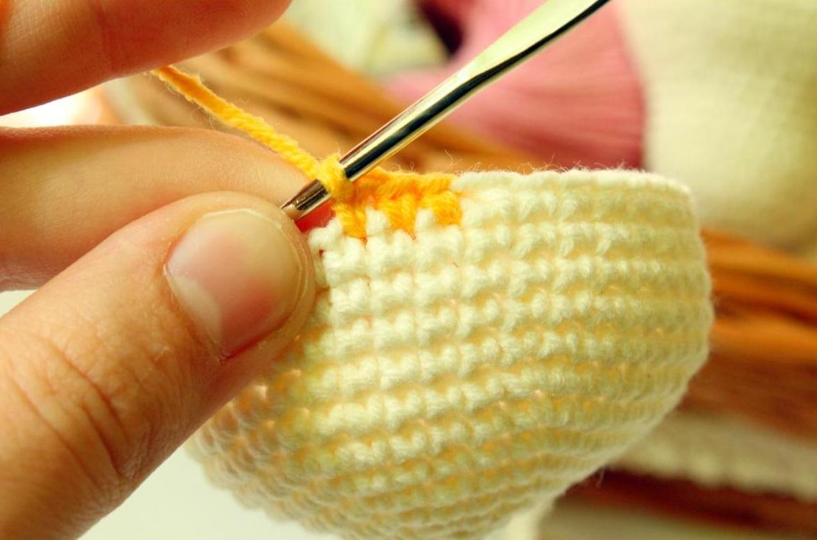 Голову вяжем нитью молочного цвета. Наполняем по ходу вязания.