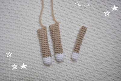 Далее нужно связать вторую. Для этого мы отсчитываем 4 петли от предыдущей ножки (фото 7) и отмечаем начало ножки. Вводим крючок, провязываем 14 сбн и затем возвращаемся в начало ряда (фото 8). Получился маленький круг. Затем вяжем ножку аналогично первой, по описанию, приведенному выше.