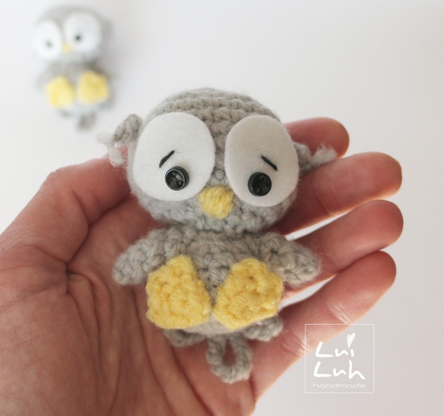 Совы амигуруми очень популярны у мастериц. Предлагаем Вам новую схему вязания совенка от LuiLuh. Совенка можно использовать в качестве брелка для украшения, например, детского рюкзачка.